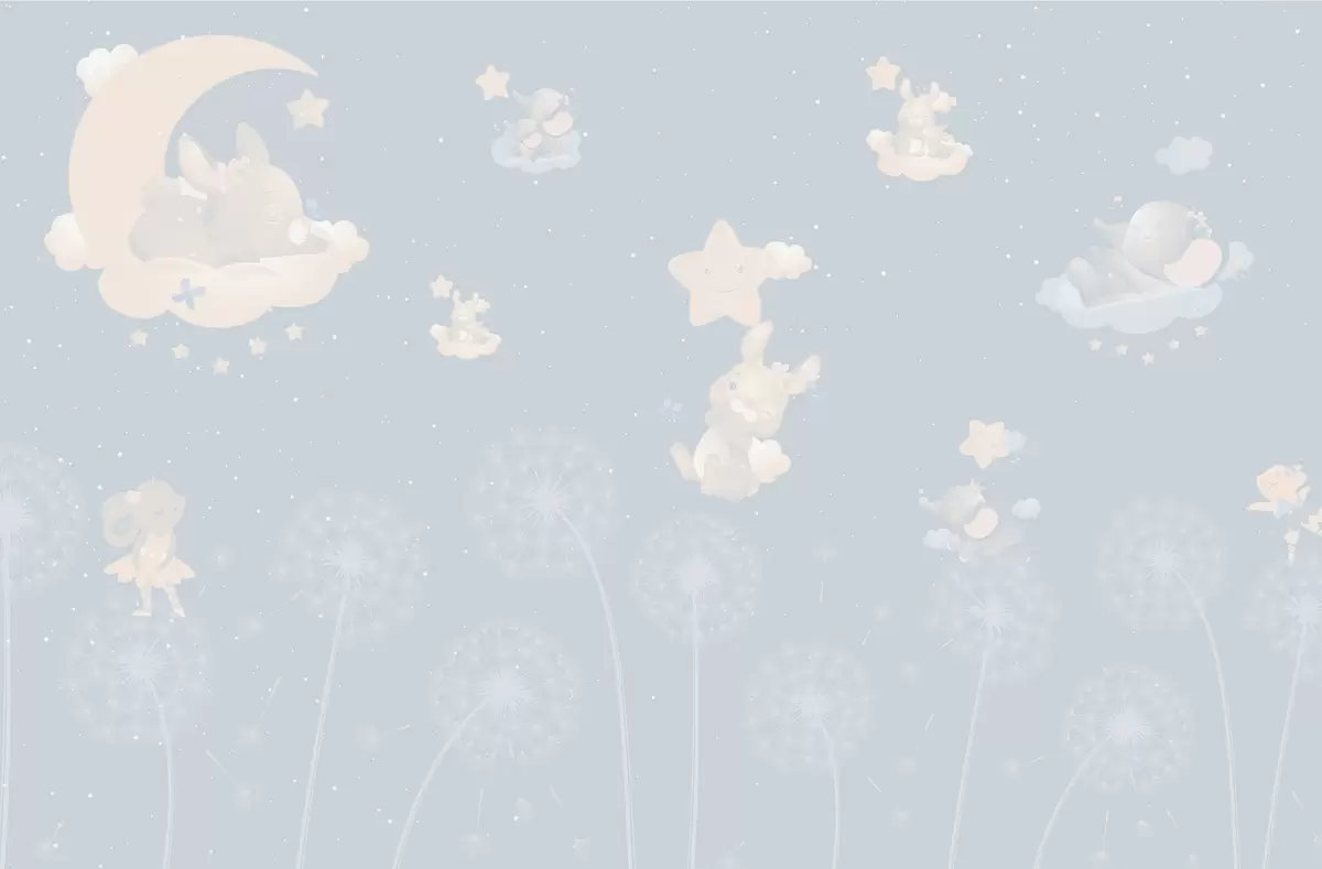 Murais de parede Conto de fadas noturno com coelho, estrelas e dentes-de-leão cor-de-rosa Nr. w04195v1
