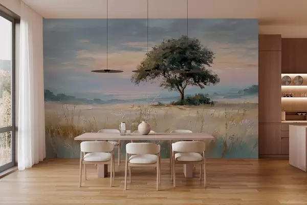Murais de parede árvore no meio de um campo ao estilo de uma pintura a óleo Nr. w04206
