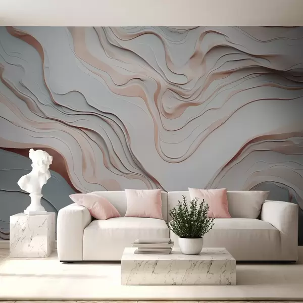 Murais de parede camadas, ondas, abstração, rosa, cinzento, formas suaves, Nr. w04255v1
