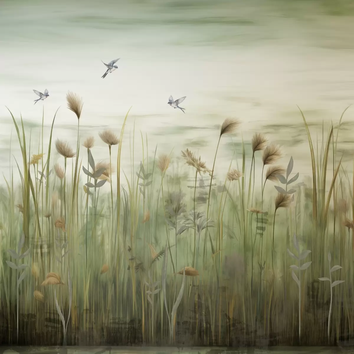 Murais de parede Paisagem de relva com andorinhas contra um céu suave Nr. w04258v1
