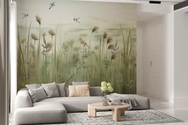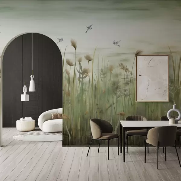 Murais de parede Paisagem de relva com andorinhas contra um céu suave Nr. w04258v1