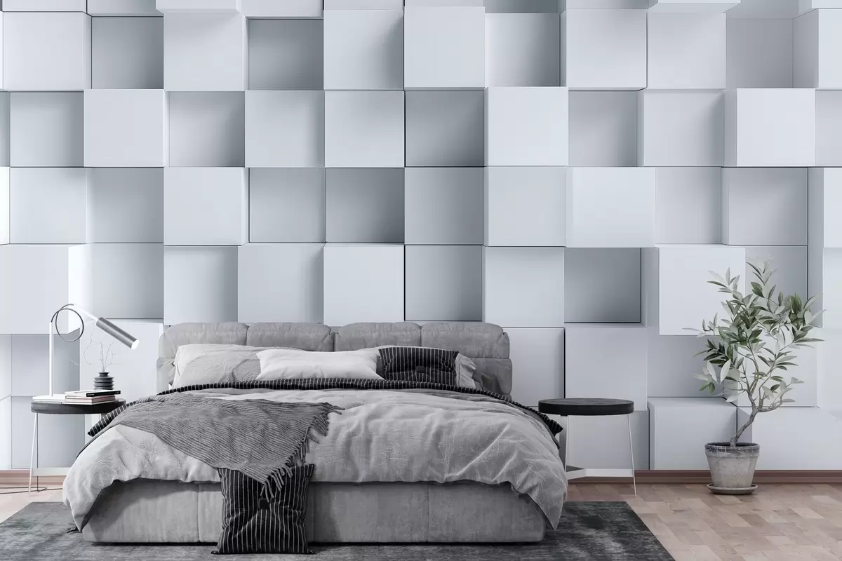 Murais de parede imitação de cubos brancos volumétricos Nr. w04283