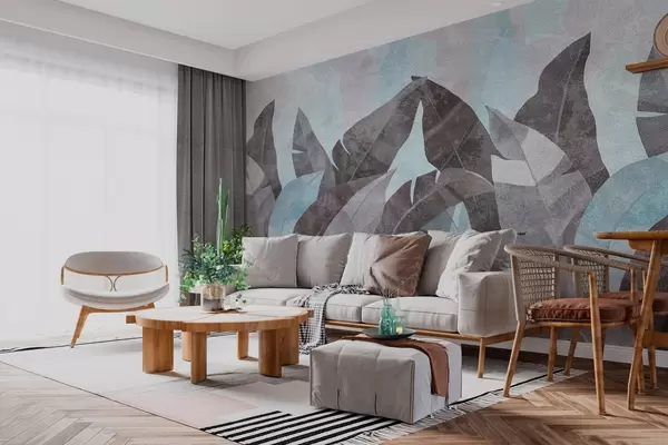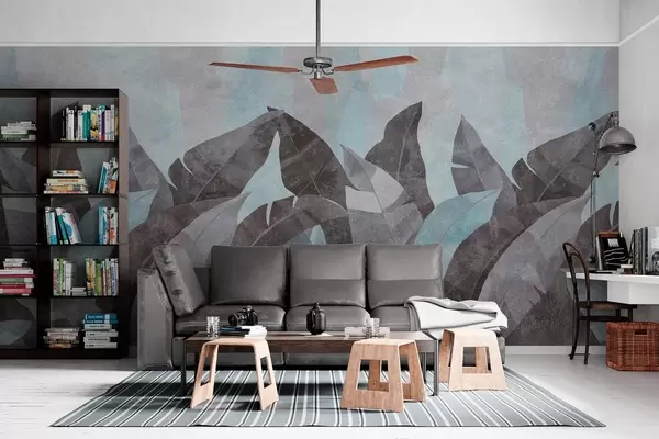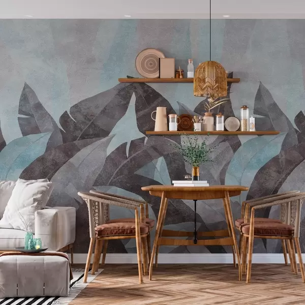 Murais de parede folhas de bananeira com textura em tons de azul e cinzento Nr. w04285v2
