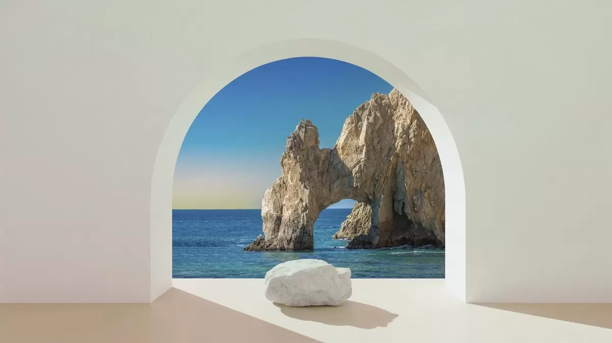 Murais de parede vista do mar e do rochedo através do arco Nr. w04286