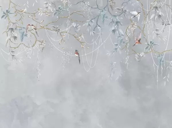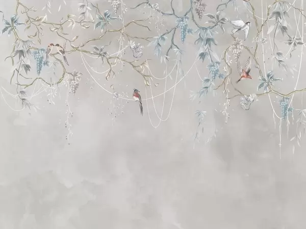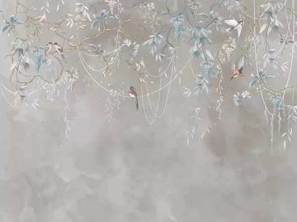 Murais de parede Variante com um fundo muito claro e detalhes em azul Nr. w04302v2