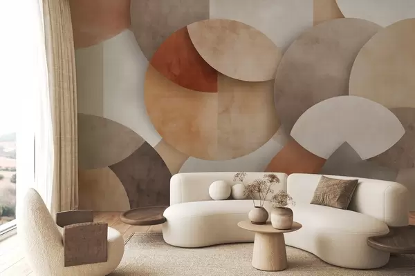 Murais de parede geometria abstrata texturada em tons quentes de castanho e ocre Nr. w04310