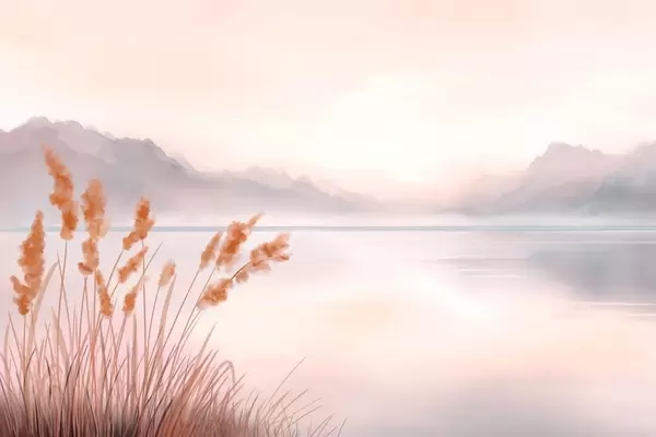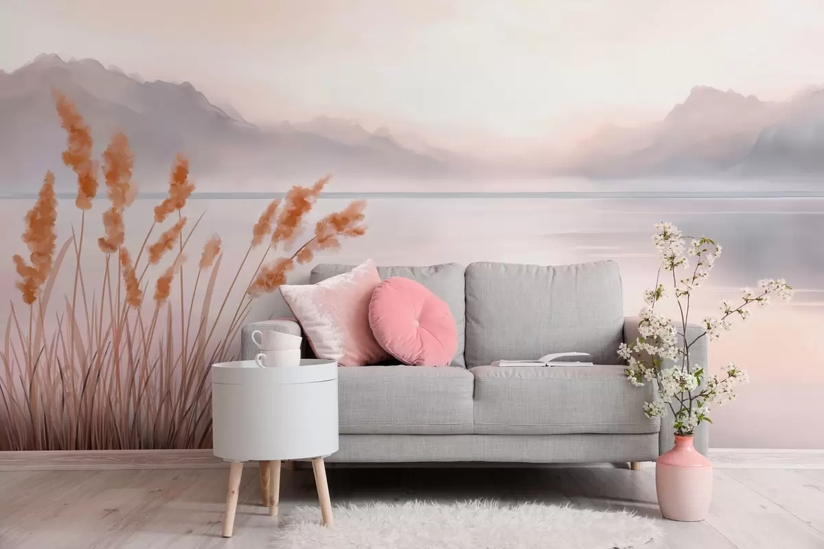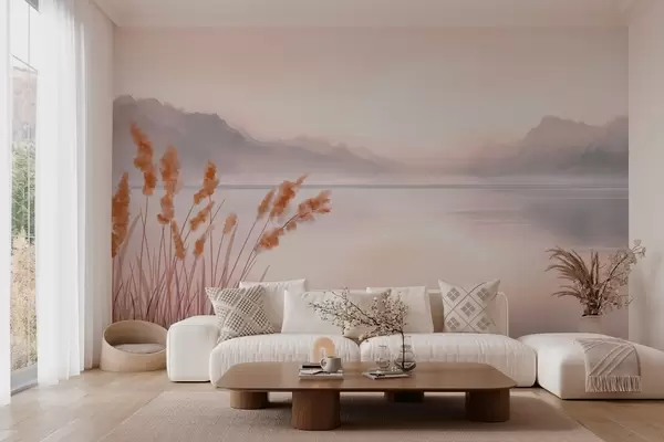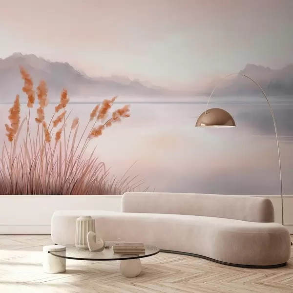 Murais de parede um lago pitoresco com juncos e montanhas Nr. w04315