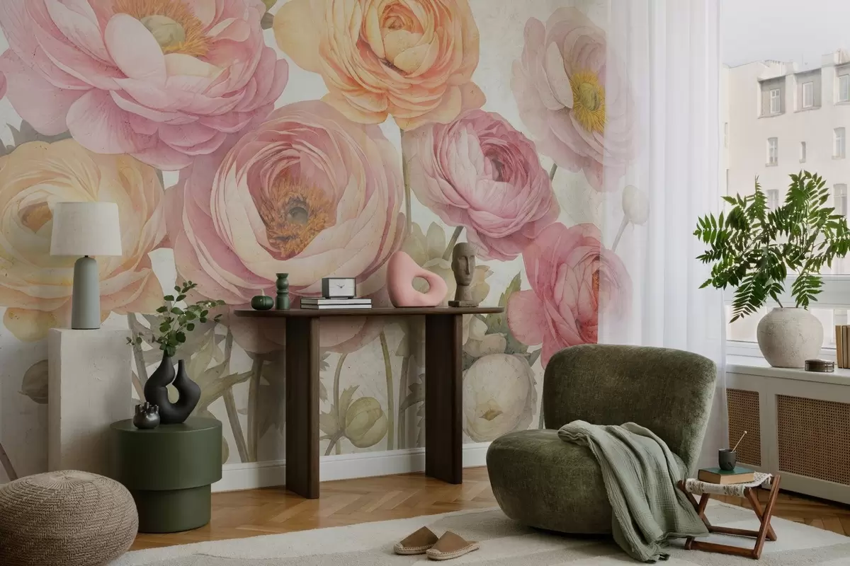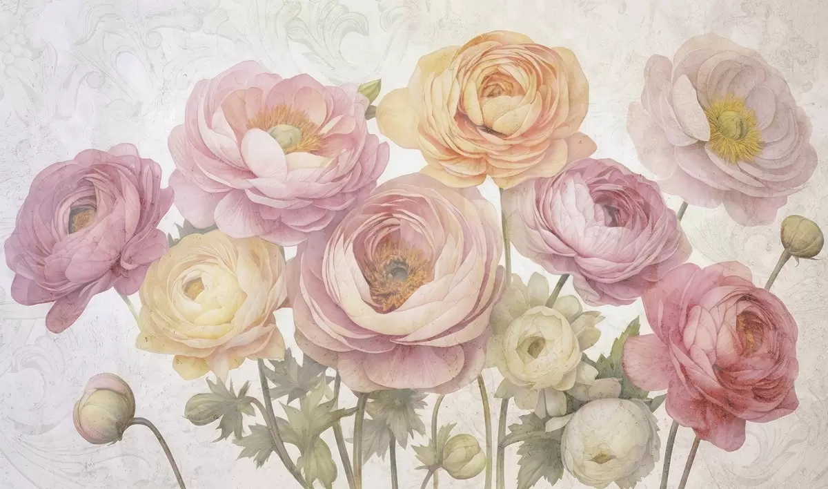 Murais de parede Bouquet vintage de ranúnculos Nr. w04326