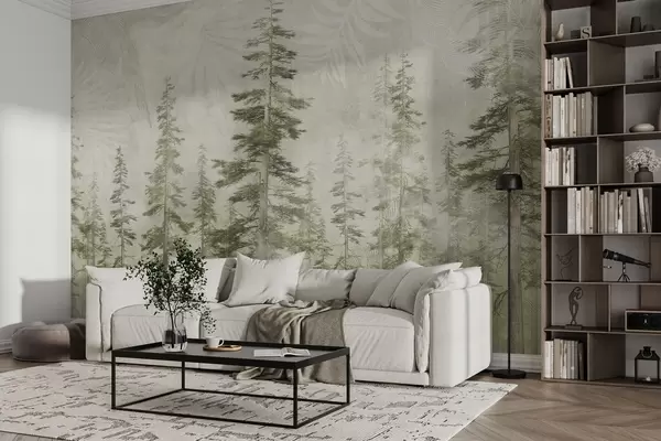 Murais de parede Floresta de pinheiros com textura de papel vintage e padrões finos Nr. w04342