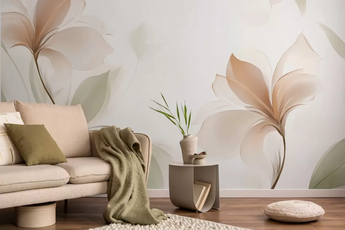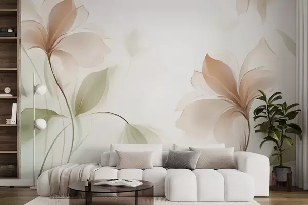 Murais de parede Flores transparentes em tons quentes de bege e rosa Nr. w04397