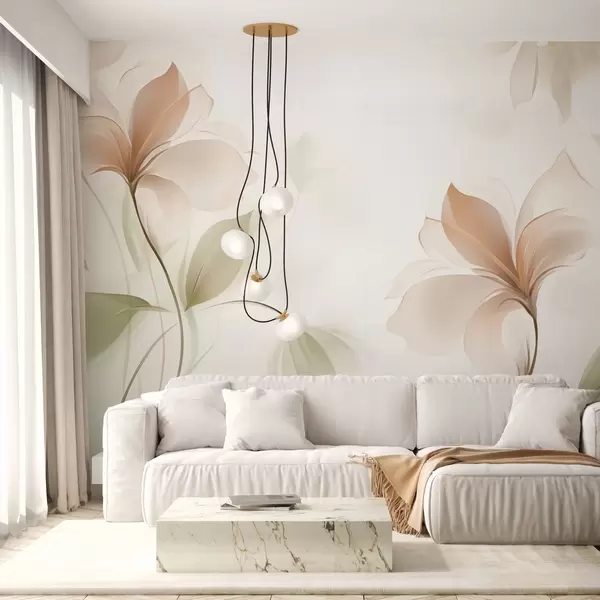 Murais de parede Flores transparentes em tons quentes de bege e rosa Nr. w04397