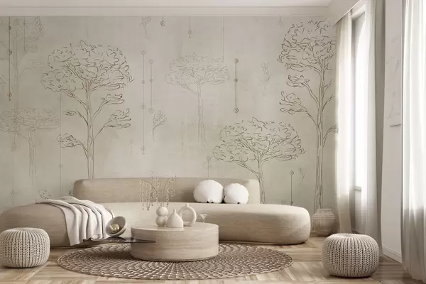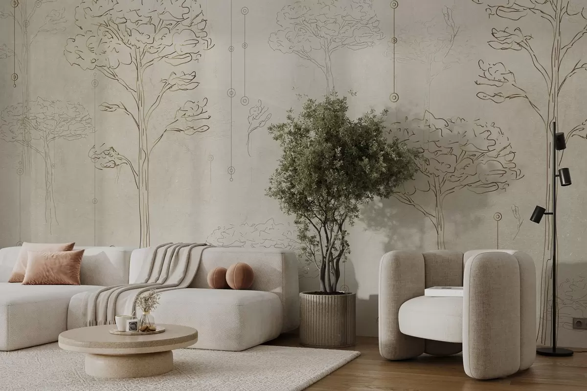 Murais de parede Silhuetas lineares de árvores num estilo minimalista Nr. w04403