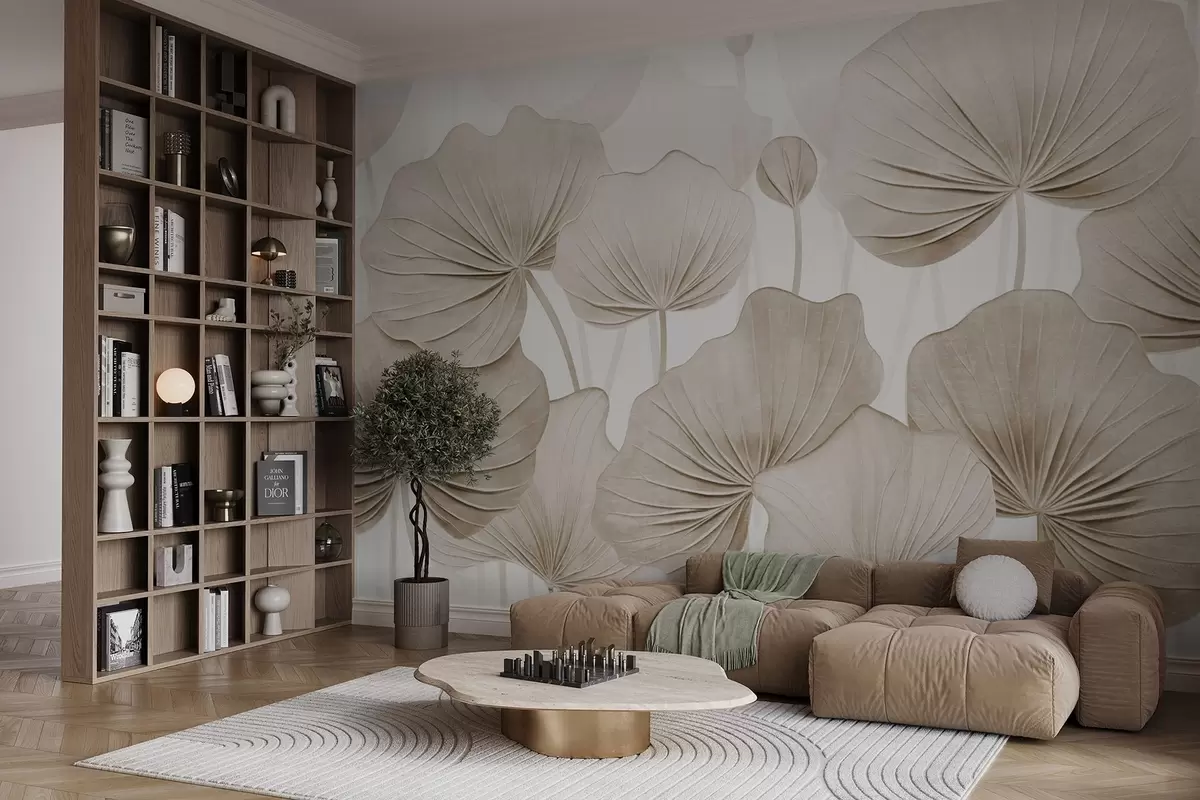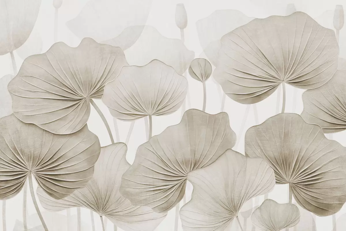 Murais de parede Folhas de lótus com imitação de textura envelhecida Nr. w04412v1