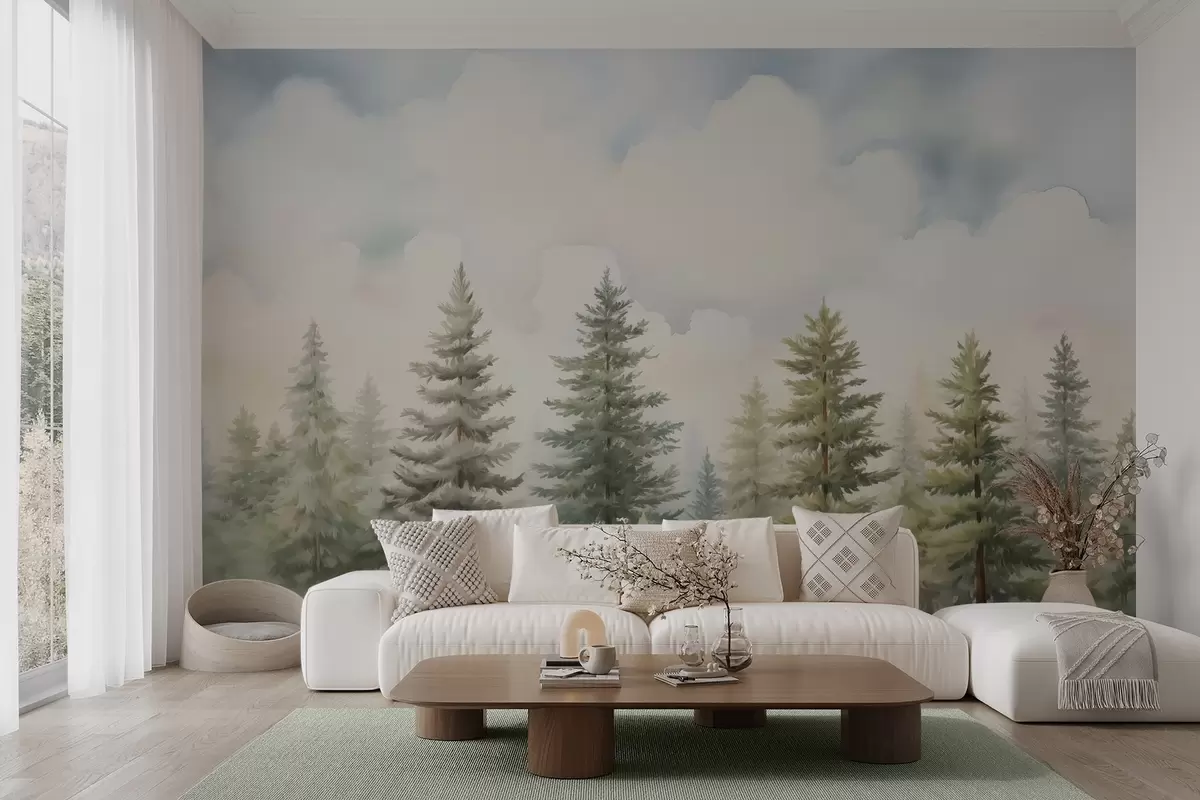 murais de parede Pintura de imitação de floresta de coníferas w04414