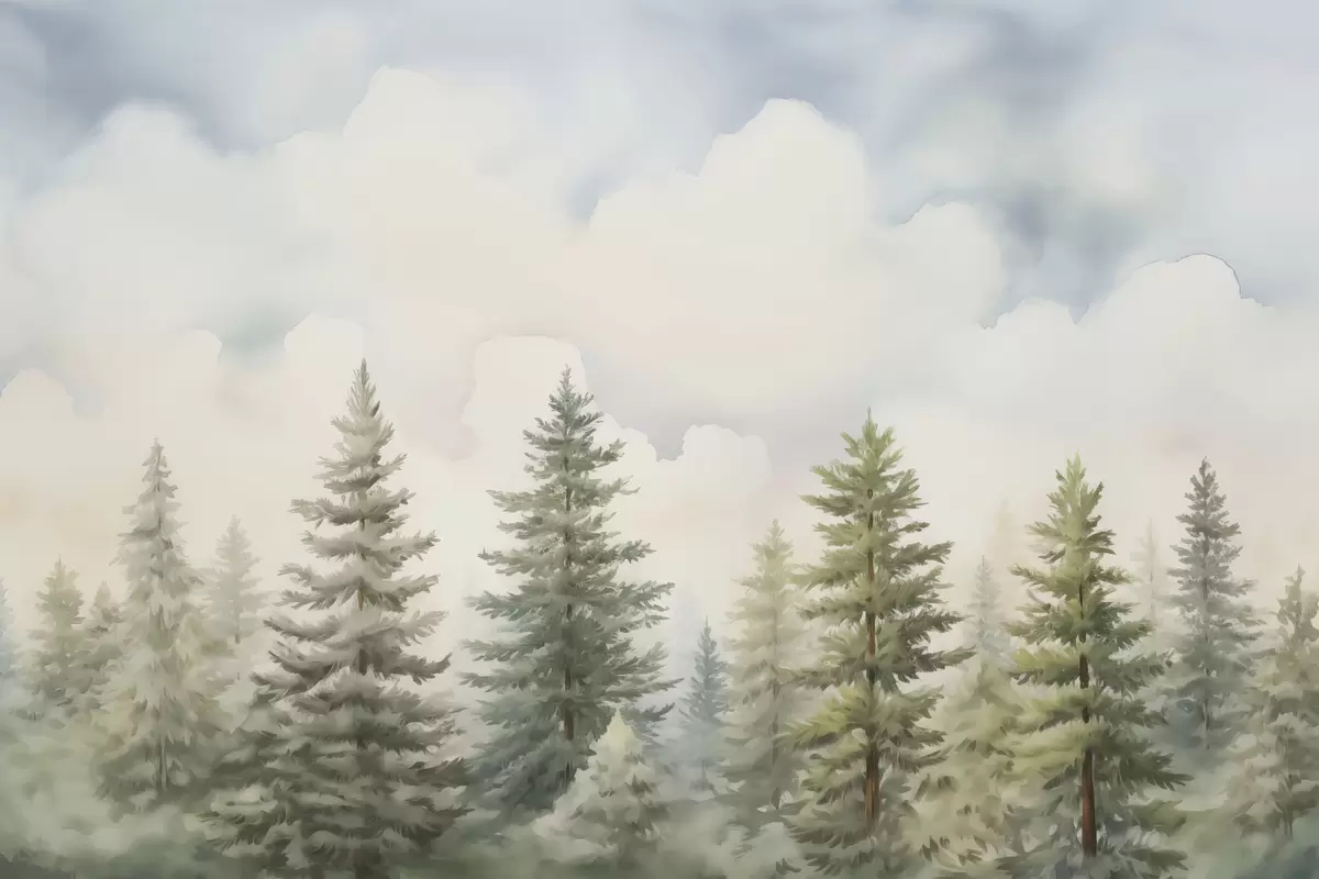 Murais de parede Pintura de imitação de floresta de coníferas Nr. w04414