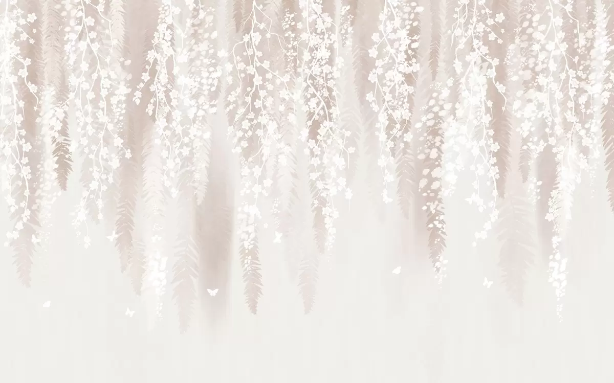 Murais de parede Ramos leves com flores brancas sobre um fundo suave Nr. w04417