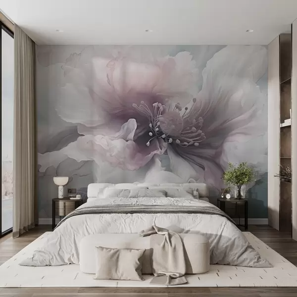 Murais de parede Flor delicada com pétalas cor-de-rosa e brancas Nr. w04446