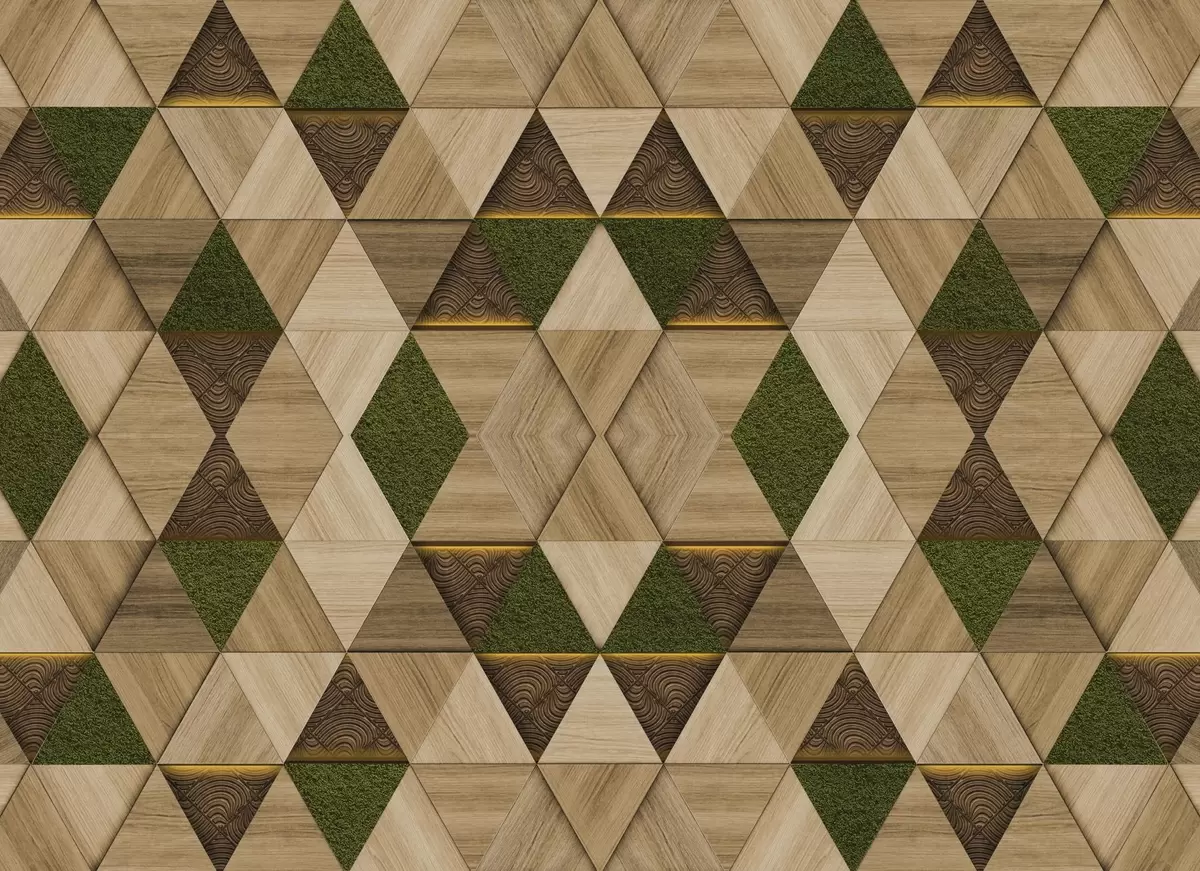 Murais de parede Ornamento geométrico em madeira com musgo Nr. w04459