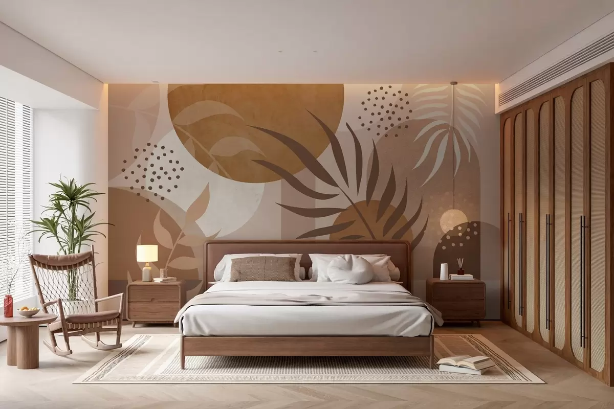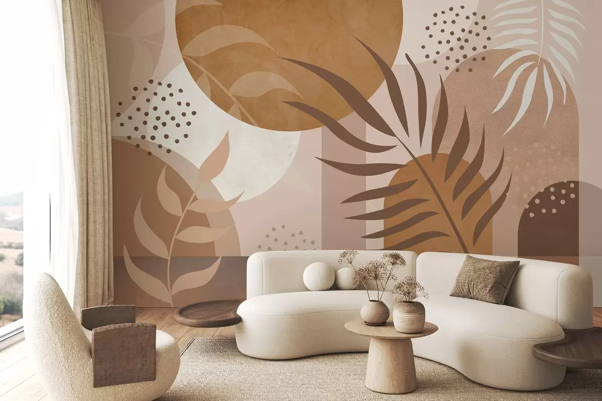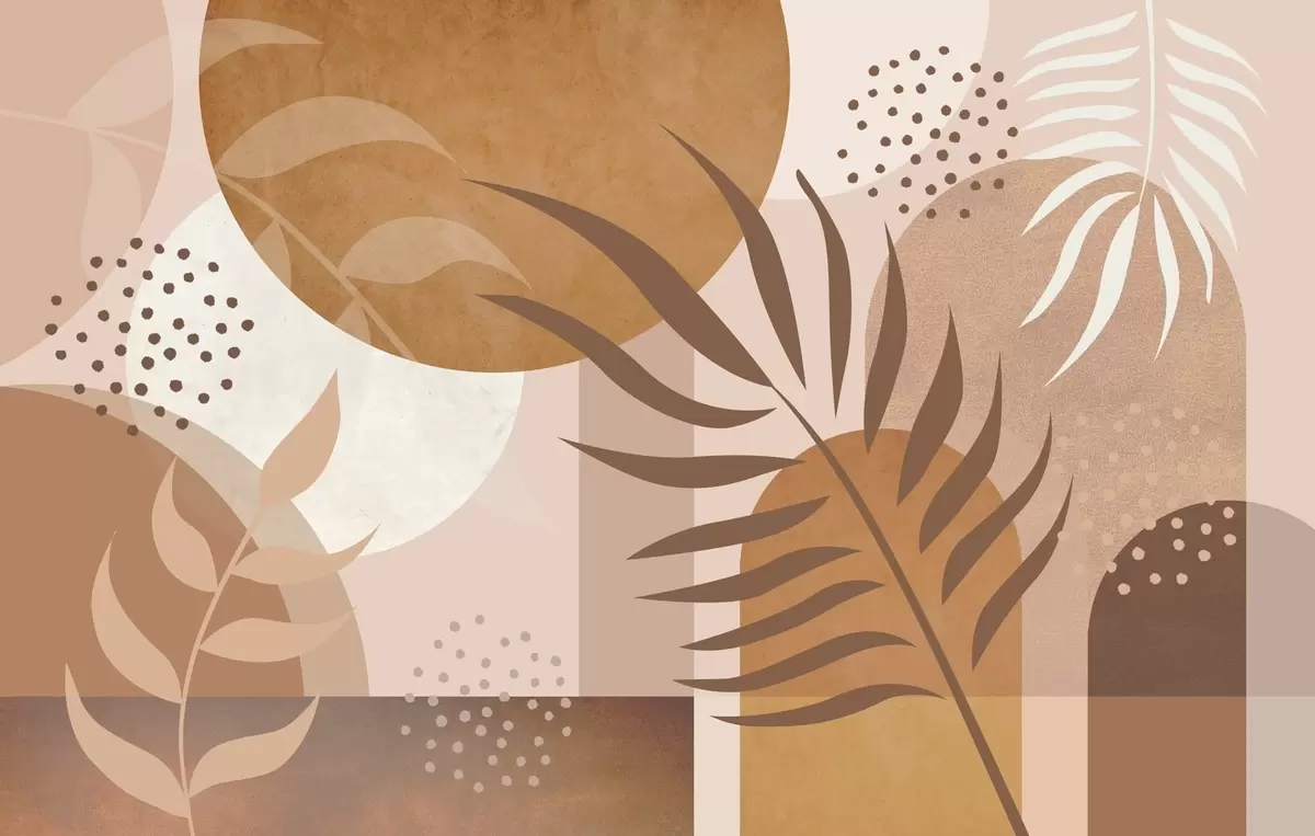 Murais de parede Abstração contemporânea com plantas em tons de castanho e bege Nr. w04497