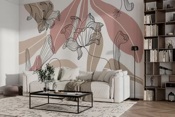 Murais de parede folhas e flores abstratas em tons de bege e pó Nr. w04499
