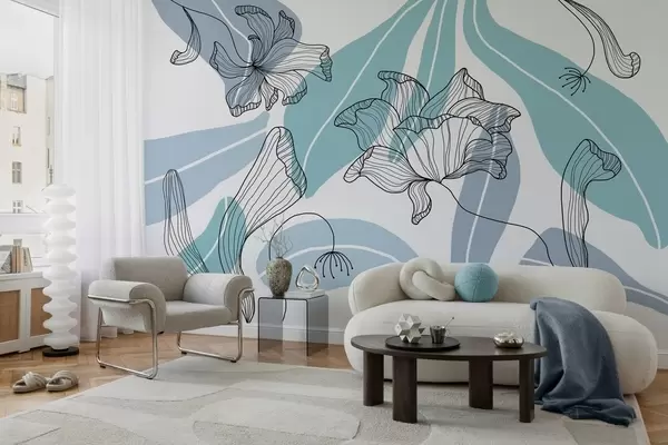 Murais de parede folhas e flores abstratas em tons de azul Nr. w04499v2