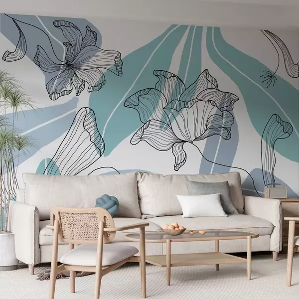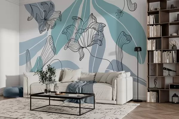 Murais de parede folhas e flores abstratas em tons de azul Nr. w04499v2