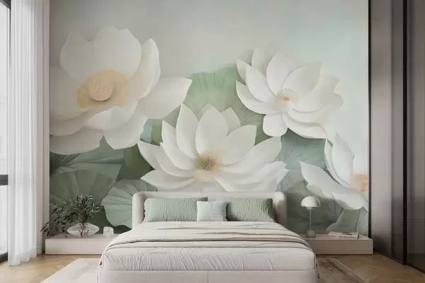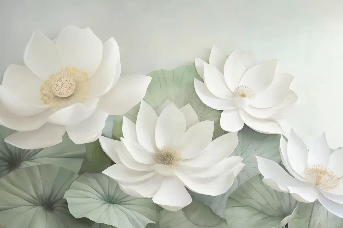 Murais de parede Flores de lótus na folhagem Nr. w04539