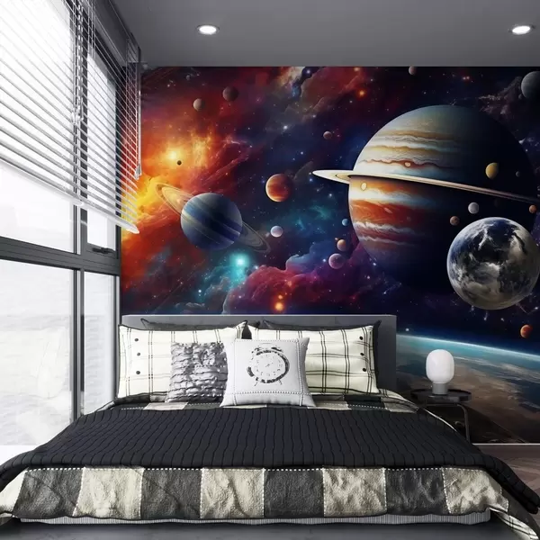 Murais de parede Cosmos colorido com planetas e nebulosas Nr. w04576