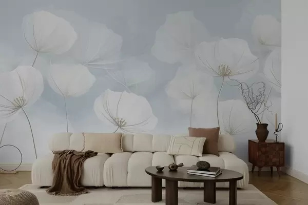 Murais de parede Flores brancas arejadas sobre fundo azul Nr. w04580