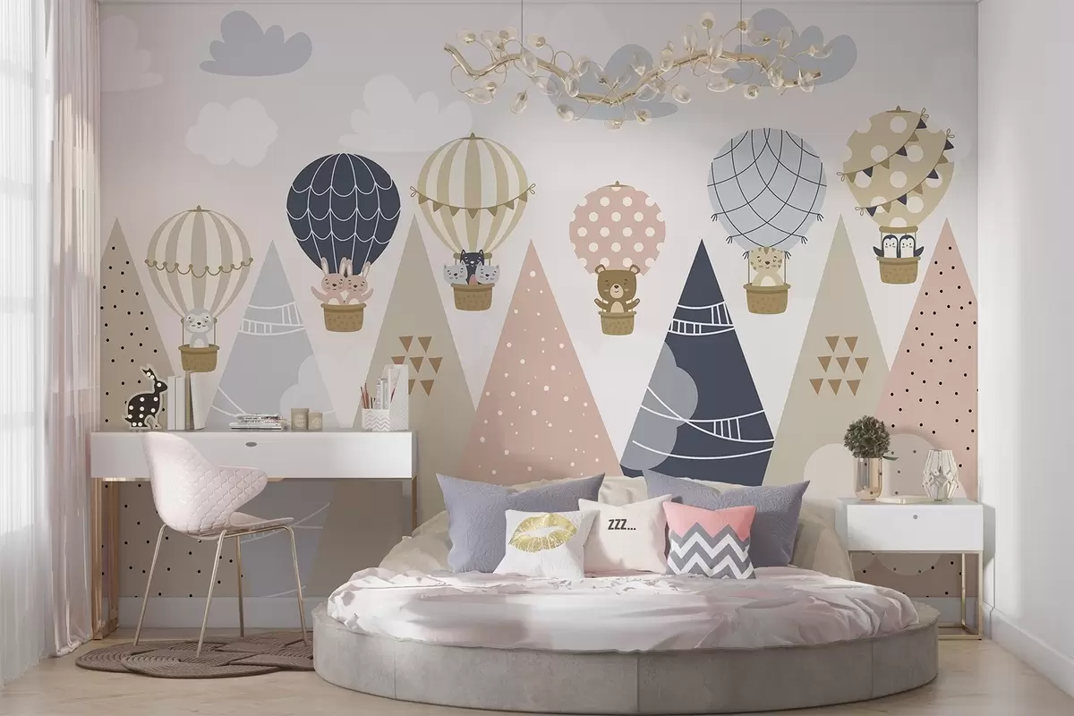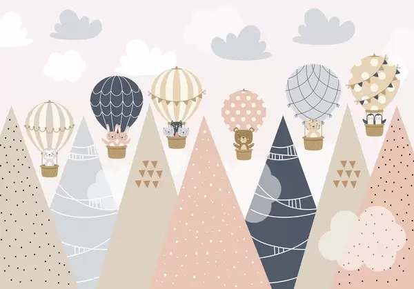 Murais de parede Balões com animais acima das montanhas Nr. w04587