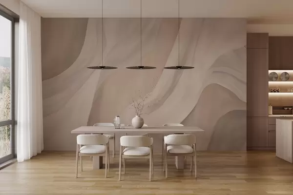 Murais de parede Ondas sedosas em tons de bege-rosa, traços suaves e fluidos Nr. w04608