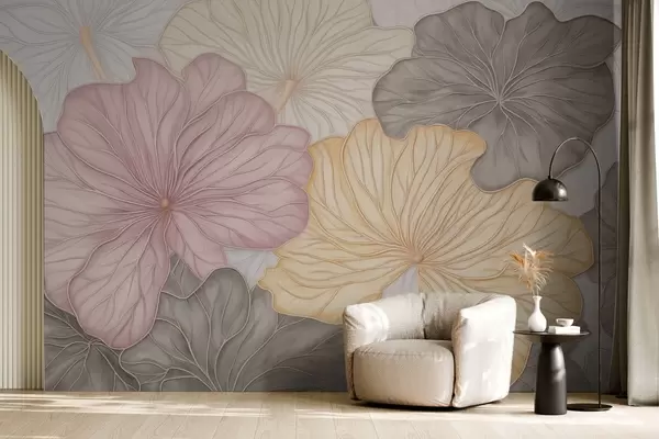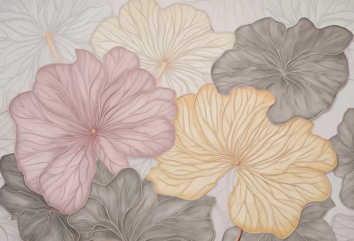 Murais de parede Folhas grandes em tons pastel com veios finos Nr. w04612