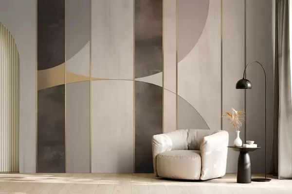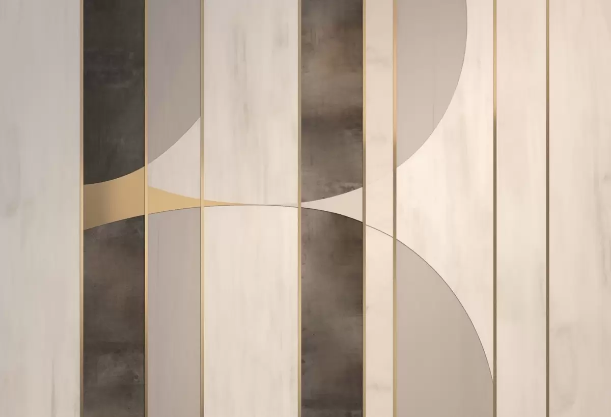 Murais de parede Painéis geométricos com arcos e detalhes em champanhe Nr. w04616