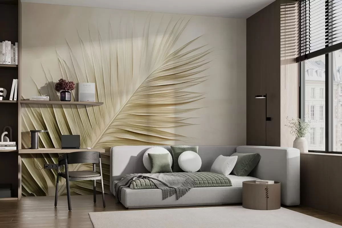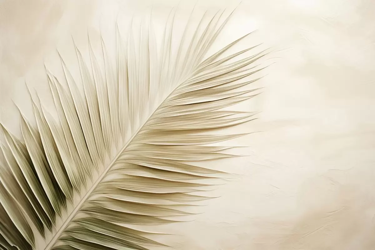 Murais de parede Folha de palmeira bege sobre fundo com textura suave Nr. w04618