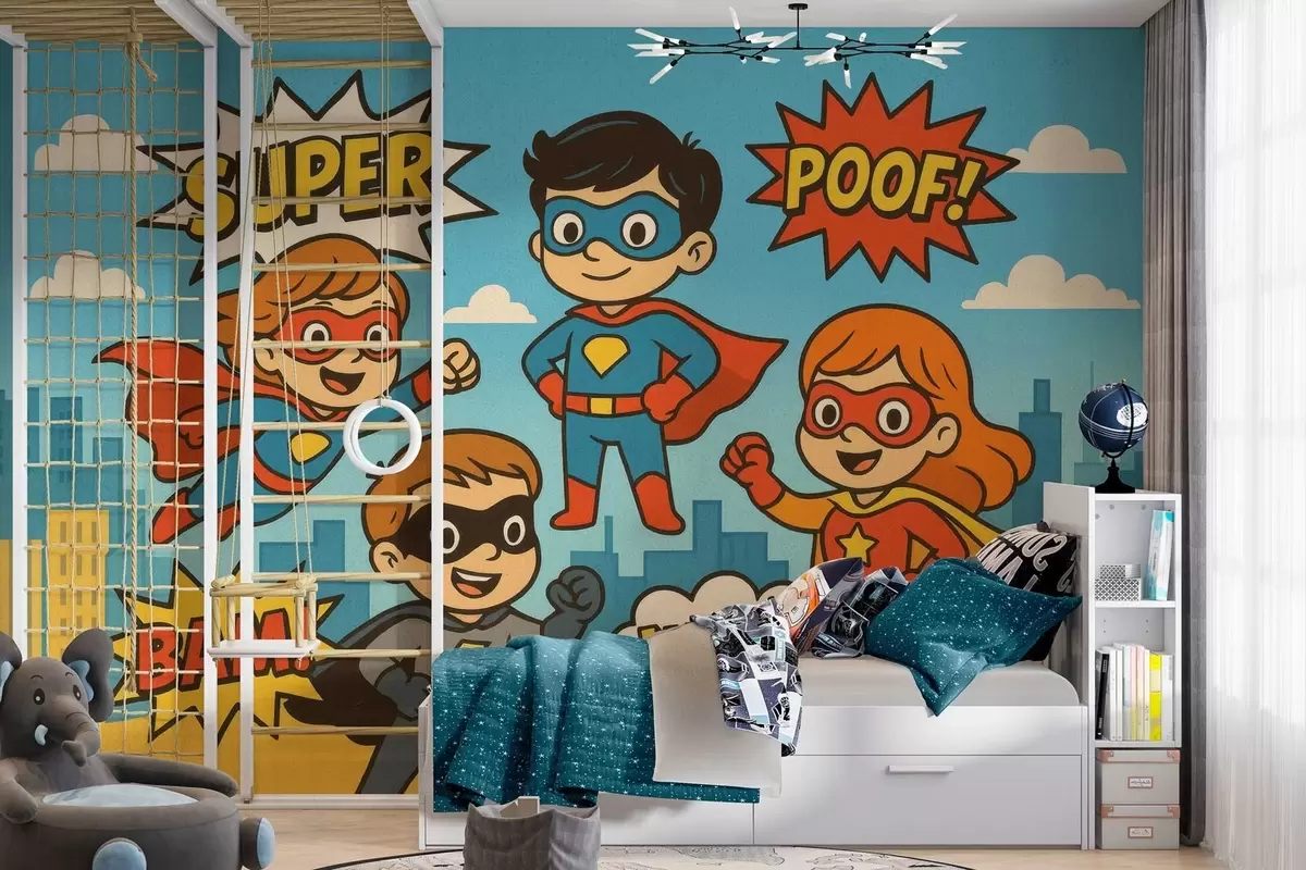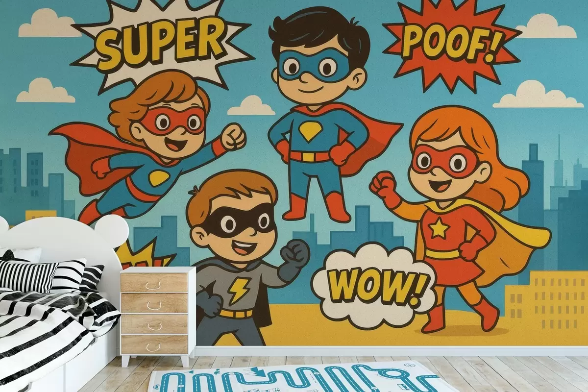 Murais de parede super-heróis engraçados ao estilo banda desenhada Nr. w04625