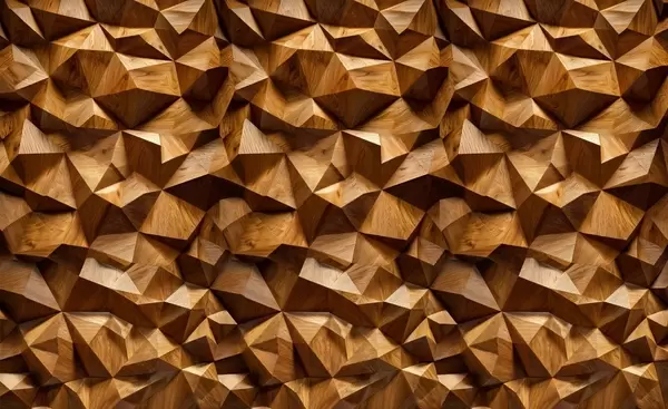 Murais de parede imitação de uma parede angular em relevo feita de madeira Nr. w04632