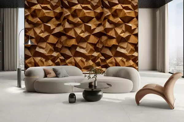 Murais de parede imitação de uma parede angular em relevo feita de madeira Nr. w04632