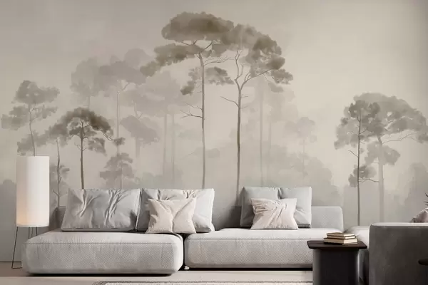 Murais de parede silhuetas leves de pinheiros em estilo aquarela Nr. w04634