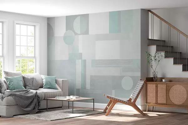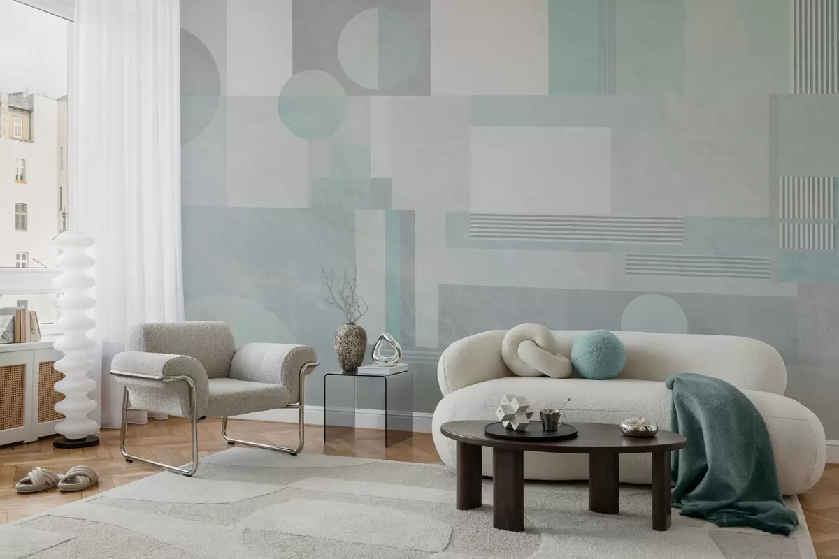 Murais de parede geometria abstrata em tons de cinza-esverdeado Nr. w04635v3