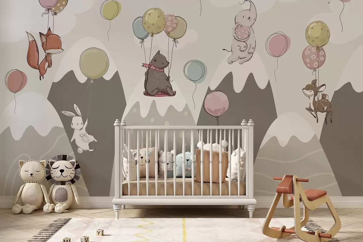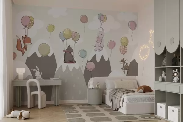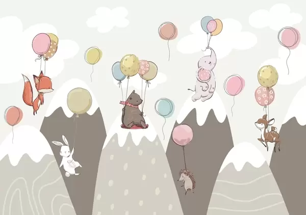 Murais de parede Montanhas escandinavas infantis com animais Nr. w04651