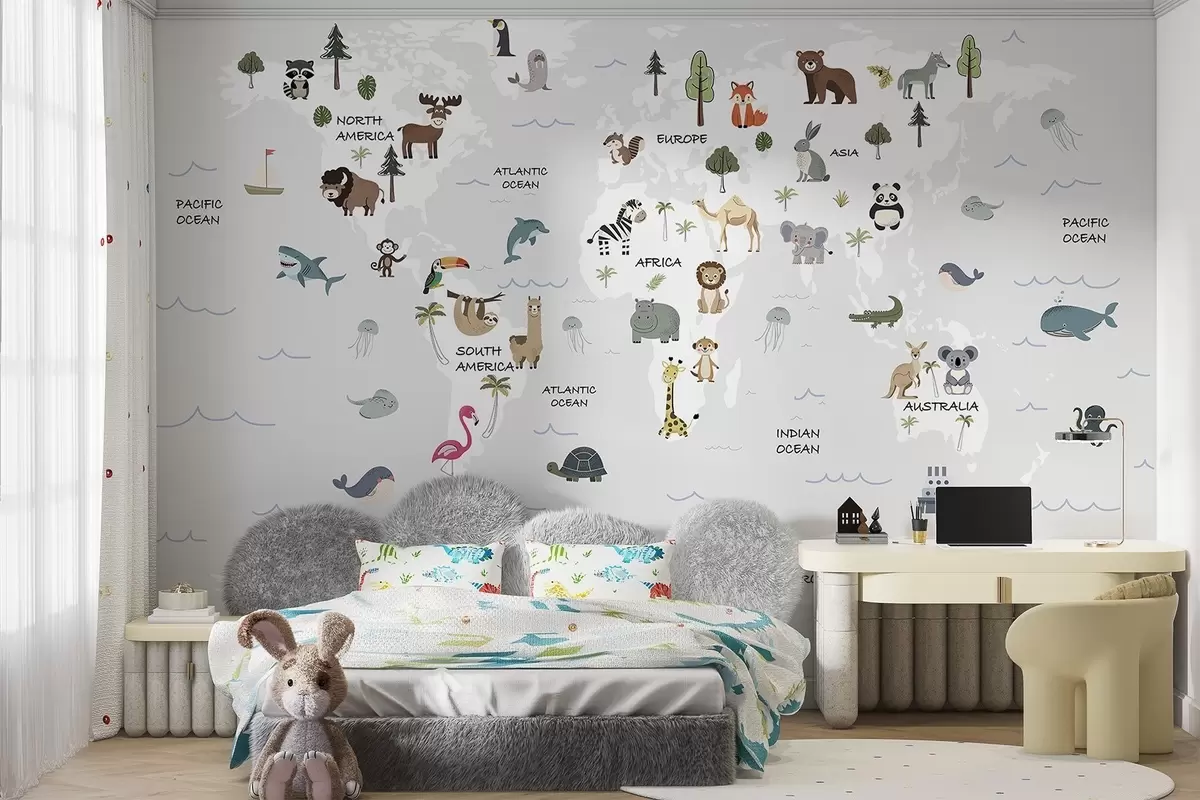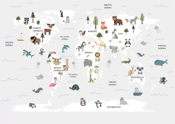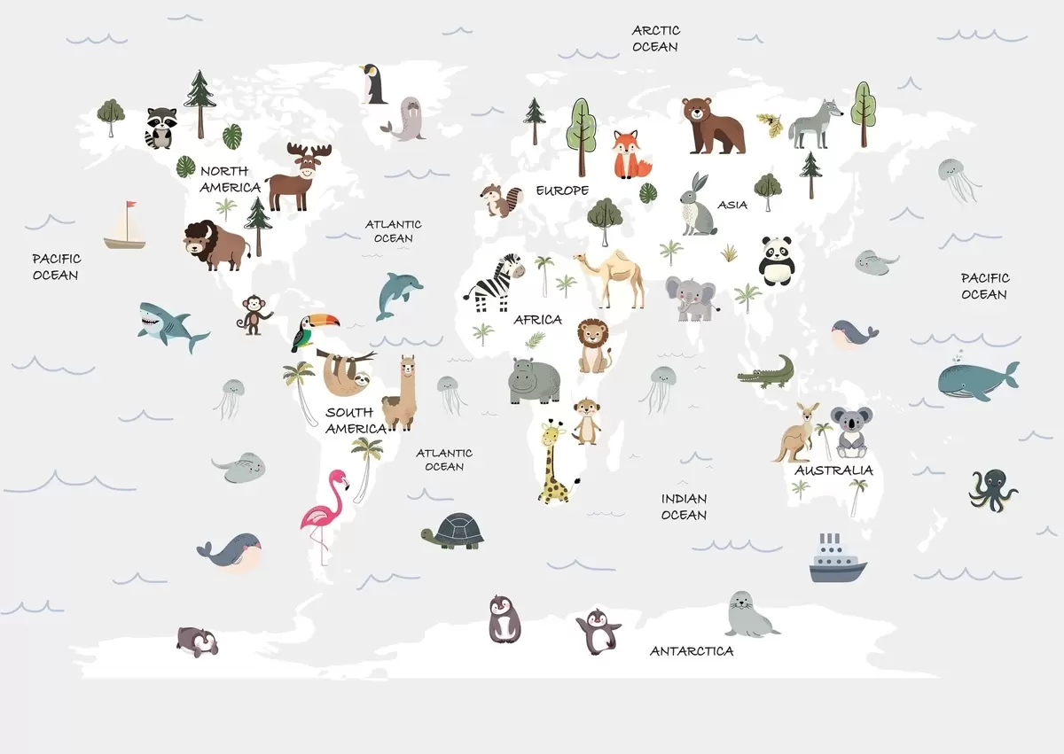Murais de parede Mapa-múndi com animais Nr. w04663