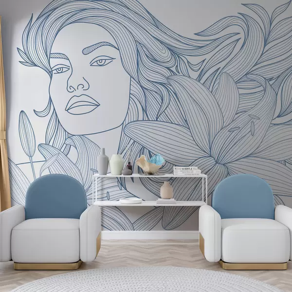 Murais de parede Retrato de uma menina em tons de azul com flores de lírio Nr. w04689v2