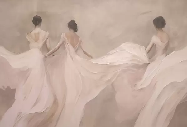 Murais de parede Três mulheres em vestidos cor-de-rosa, tecido esvoaçante, suavidade Nr. w04709