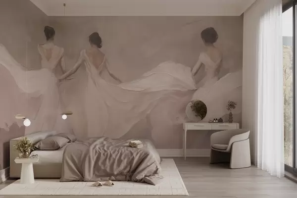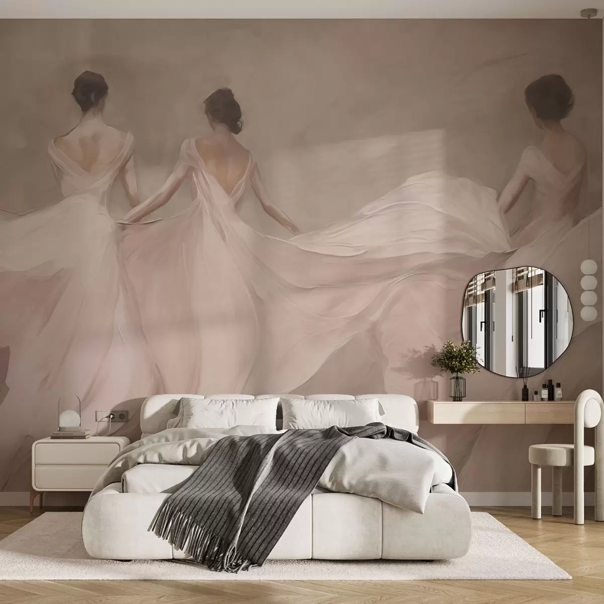 murais de parede Três mulheres em vestidos cor-de-rosa, tecido esvoaçante, suavidade w04709
