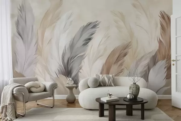 Murais de parede Penas macias e fofas numa paleta neutra e quente Nr. w04736