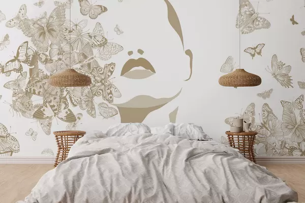 Murais de parede Silhueta de um rosto entre borboletas Nr. w04778v2
