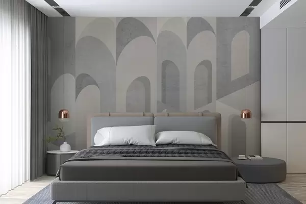 Murais de parede metamorfoses urbanas do arco em tons cinzentos e bege frios Nr. w04812v1