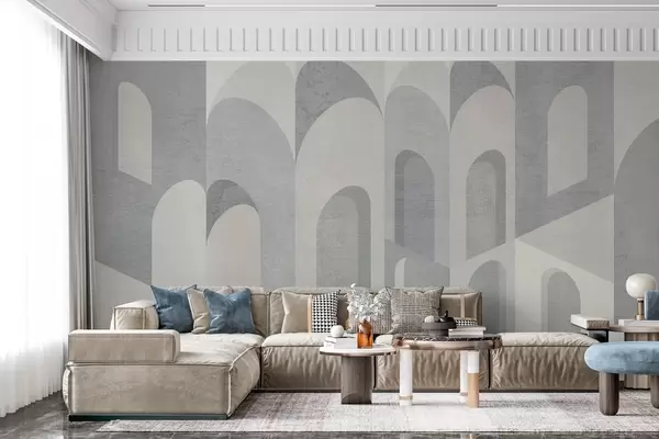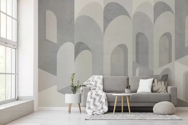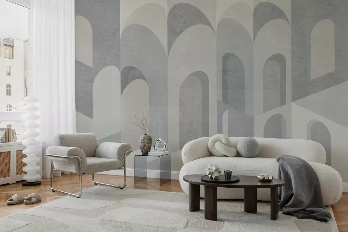 Murais de parede metamorfoses urbanas do arco em tons cinzentos e bege frios Nr. w04812v1