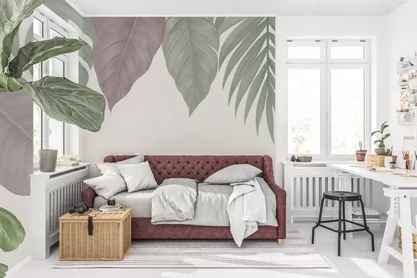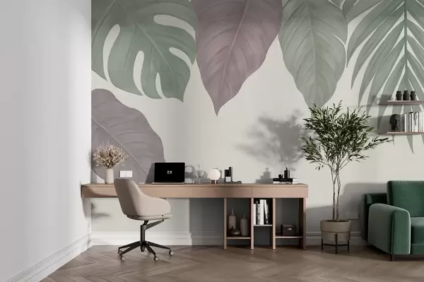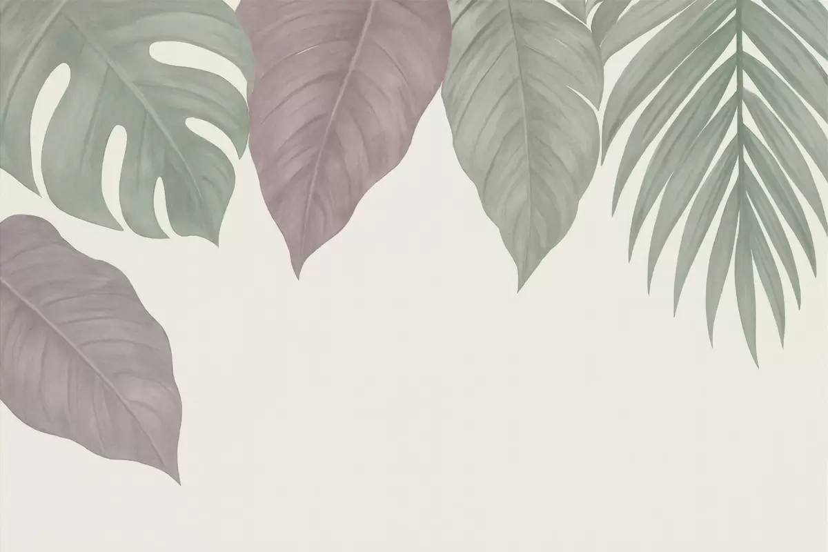 Murais de parede folhas tropicais grandes num estilo simples, vistas de cima Nr. w04819