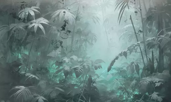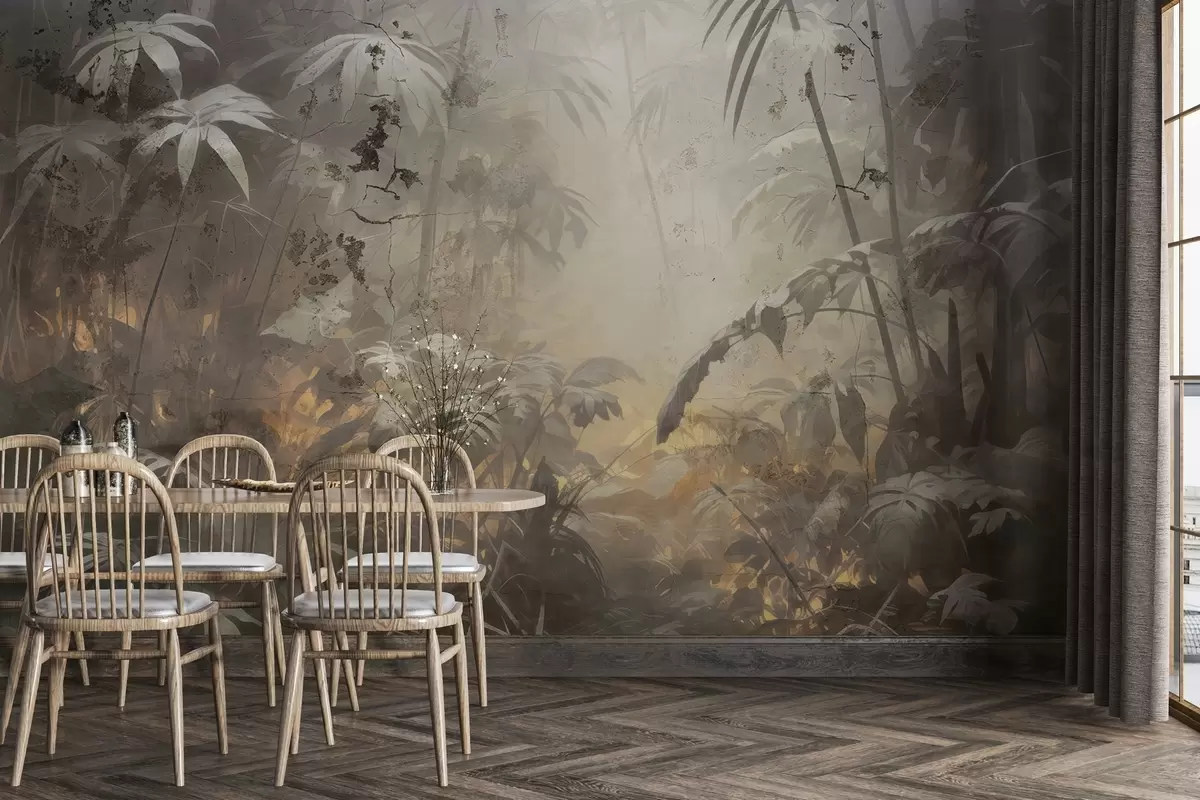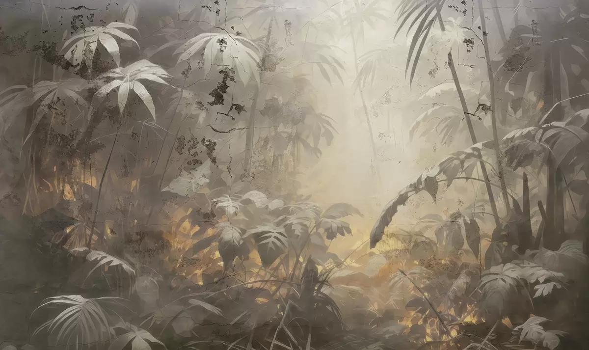 Murais de parede Selva pintada atrás de um muro de betão sujo Nr. w04833